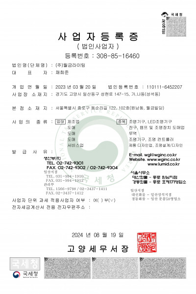 월금조명 사업자등록증, 공장등록증